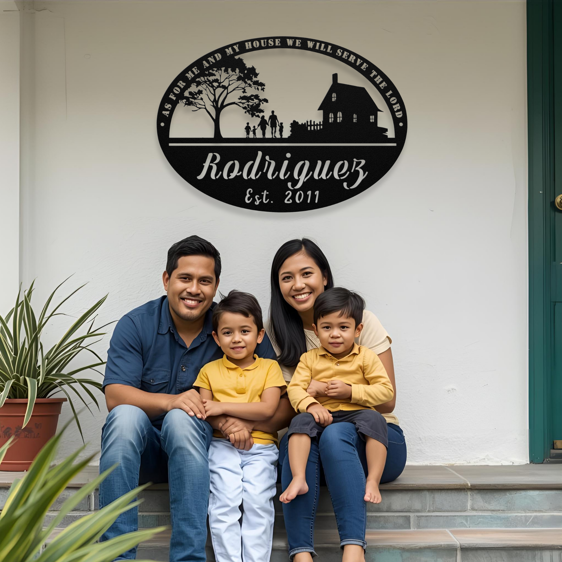 Add a meaningful touch to your home with this personalized metal wall art, featuring the inspiring verse Joshua 24:15, "As for me and my house, we will serve the lord." This custom piece is a heartfelt reminder of your family's devotion and values, making it a perfect addition to any living space.